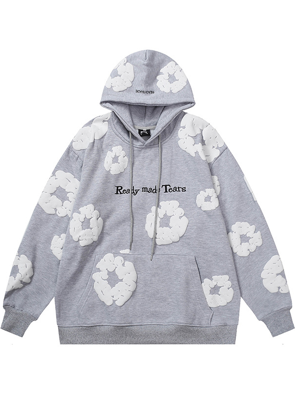 Übergroßer Langarm-Hoodie mit Blumendruck für Herren