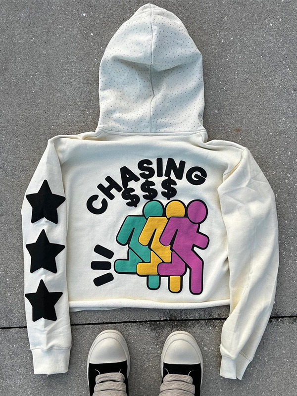Übergroßer Kapuzenpullover mit Kordelzug und Reißverschluss für Herren mit Dämonen-Print