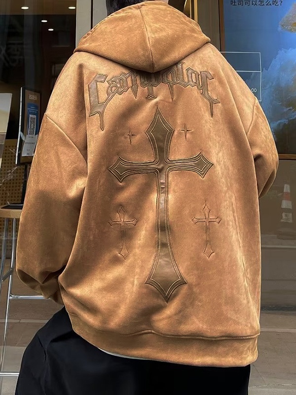 Übergroßer Kapuzenpullover mit Buchstaben-Kreuz-Print für Herren