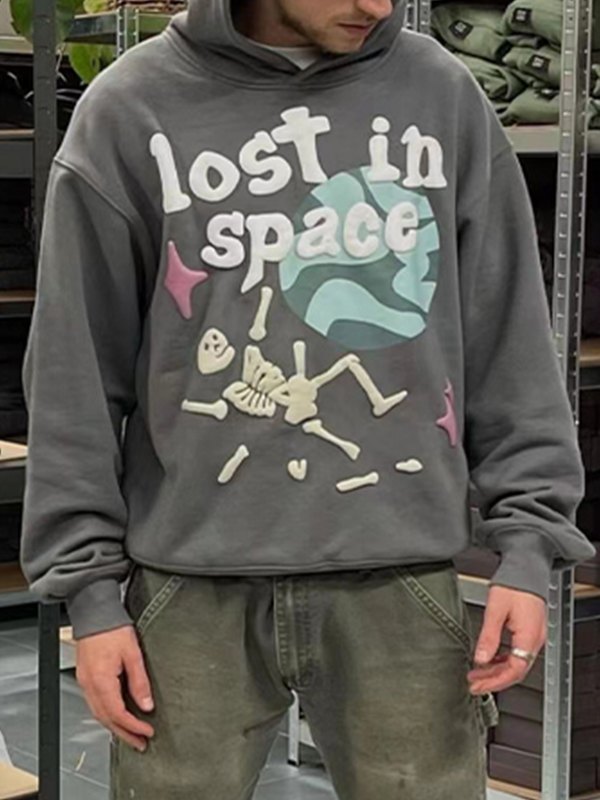 Übergroßer Kapuzenpullover mit langen Ärmeln und dunklem Print für Herren