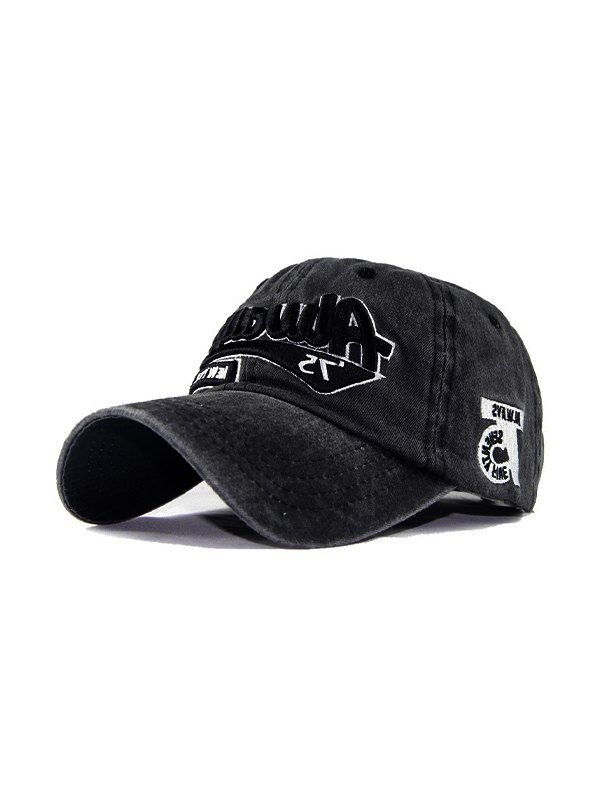 Mit Buchstaben bestickte Distressed-Denim-Baseballkappe