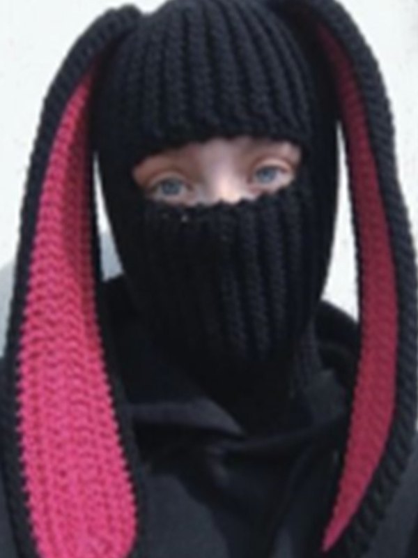 Kontrastfarbene Strickmütze mit quadratischem Design