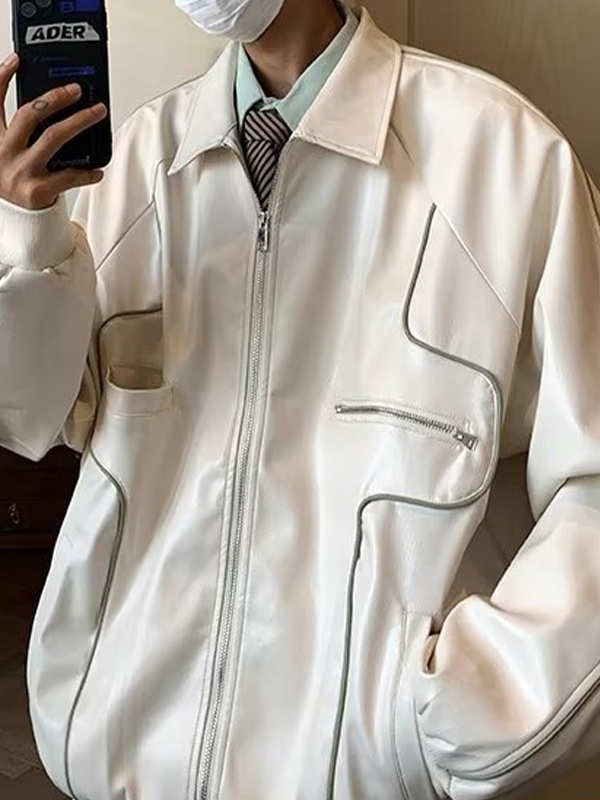 Kunstlederjacke mit Reißverschluss und Paspeldetail