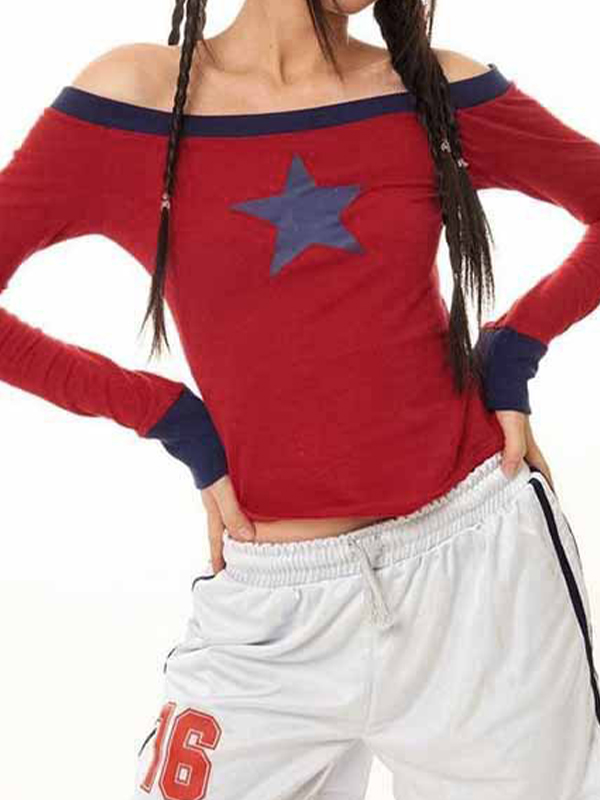 Langarm-T-Shirt mit One-Shoulder-Star-Print