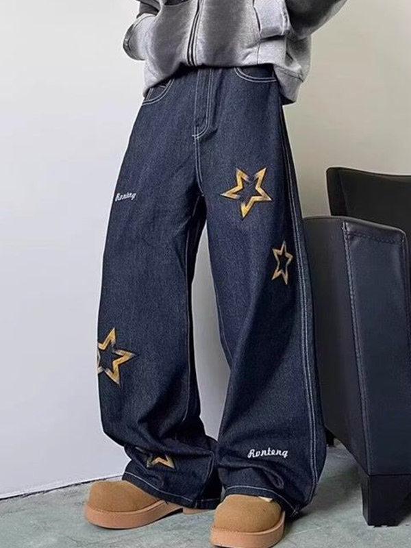 Lose lockere Baggy-Jeans für Herren mit verwaschenem Aufdruck