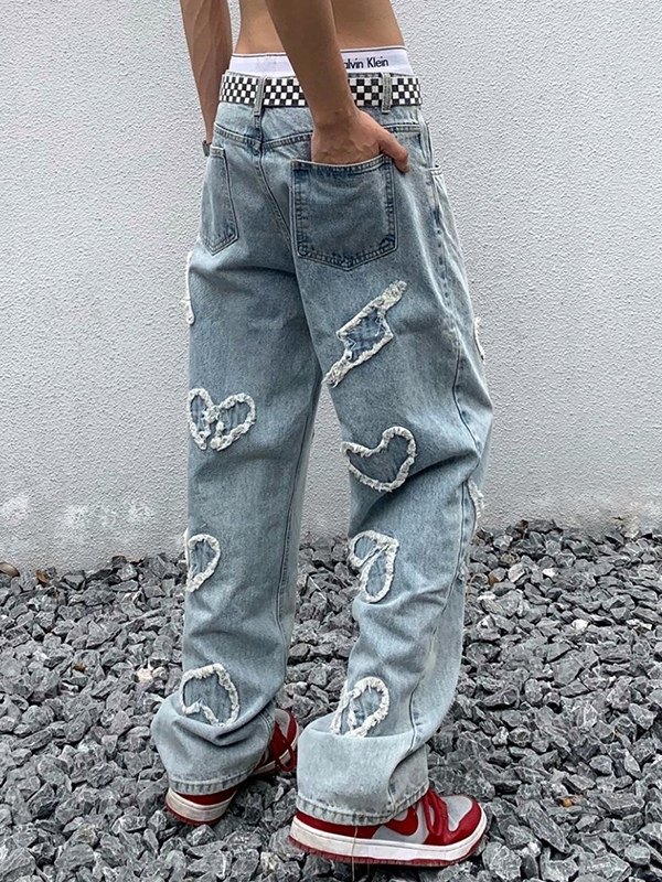 Lockere Jeans mit Herz-Patch für Herren in heller Waschung
