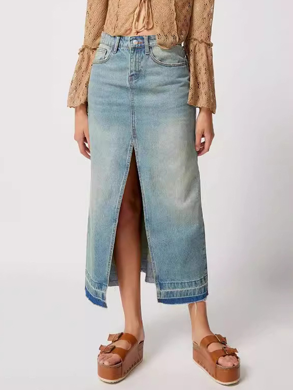 Baggy-Maxirock mit ausgewaschenem Rückenschlitz