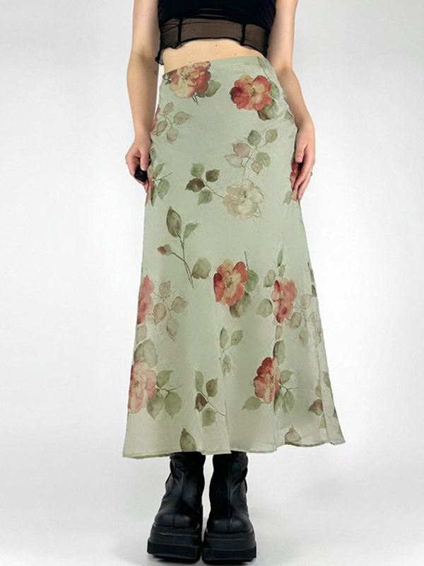Französischer Maxirock mit kleinem, frischem Blumendruck