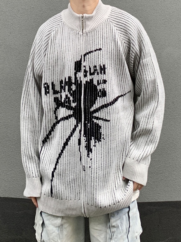 Herren-Strick-Oberbekleidung mit Spinnenmuster, Kragen, Halsausschnitt und Reißverschluss