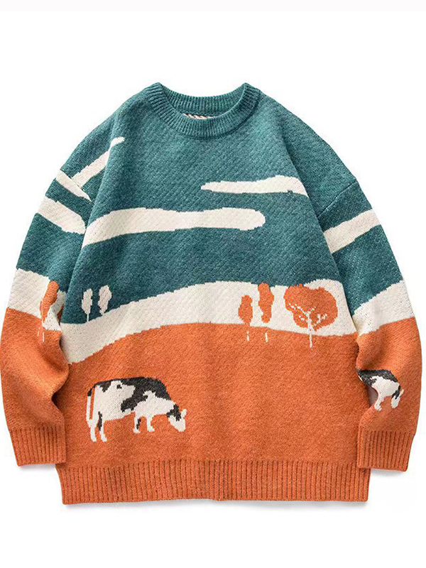 Übergroße Pullover mit Kuh-Print