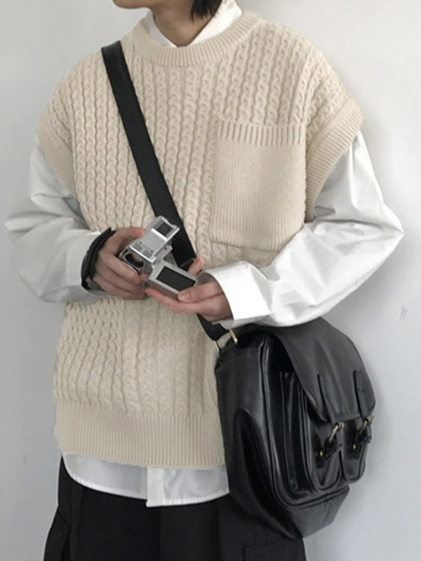 Herren-Strickweste mit Zopfmuster und Tasche vorne