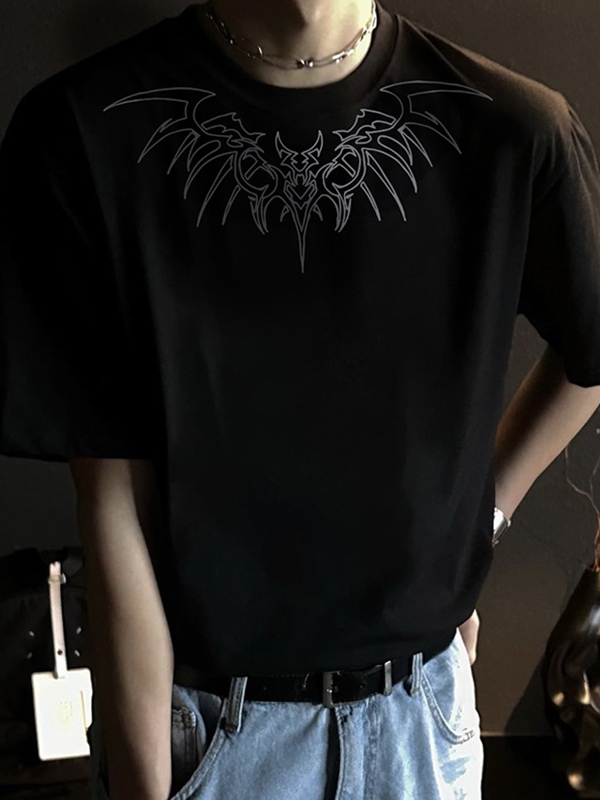Übergroßes Kurzarm-T-Shirt mit Flügel-Print für Herren