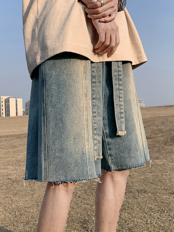 Herren-Shorts zum Binden mit ausgefranstem Saum in Waschung