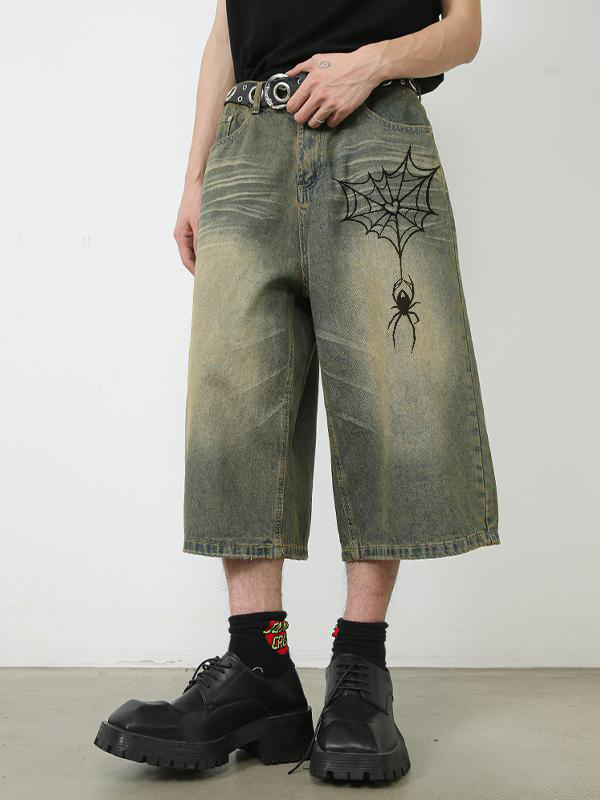Lockere, lässige Jeansshorts für Herren mit Spinnen-Print