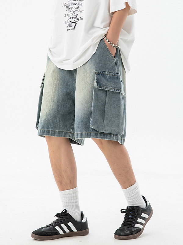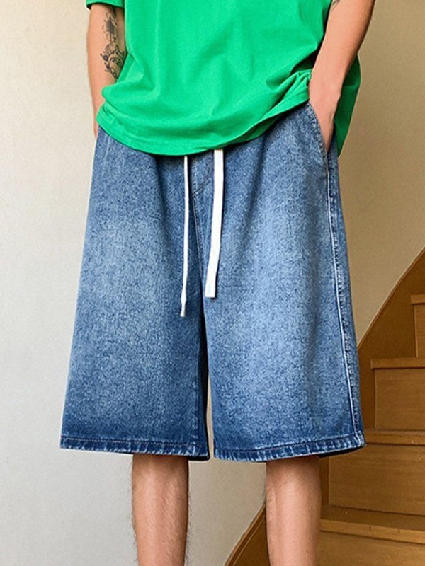 Locker geschnittene Denim-Shorts für Herren in Basic-Waschung