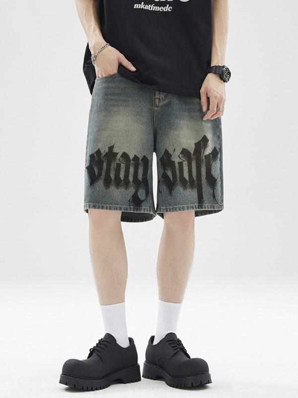 Lockere, lässige Jeansshorts für Herren mit Buchstabendruck