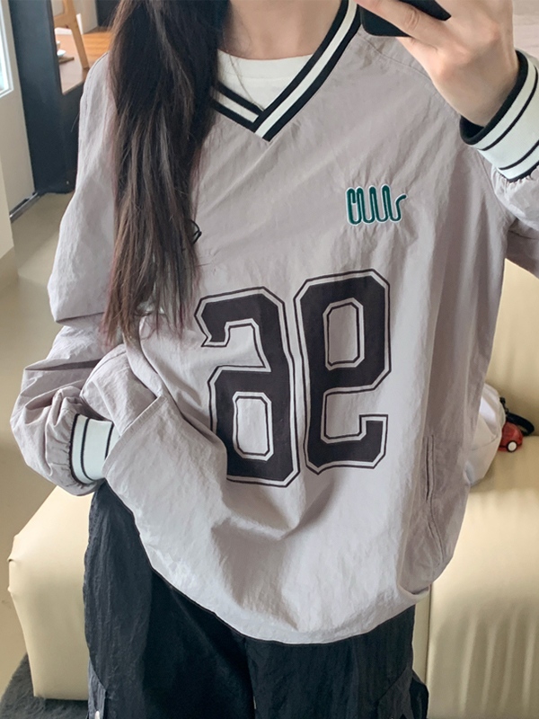 Dünnes Sweatshirt mit V-Ausschnitt und Zahlen-Print
