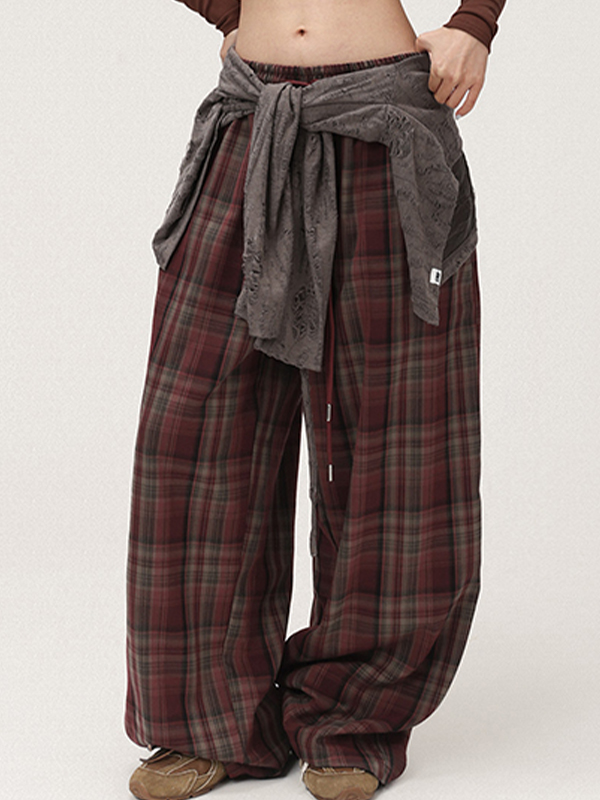Karierte Baggy-Cargohose mit Fallschirmmuster