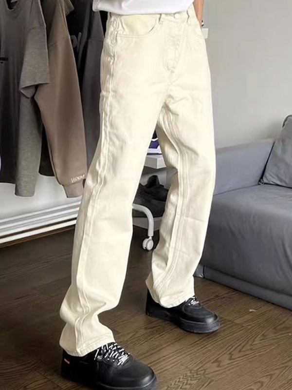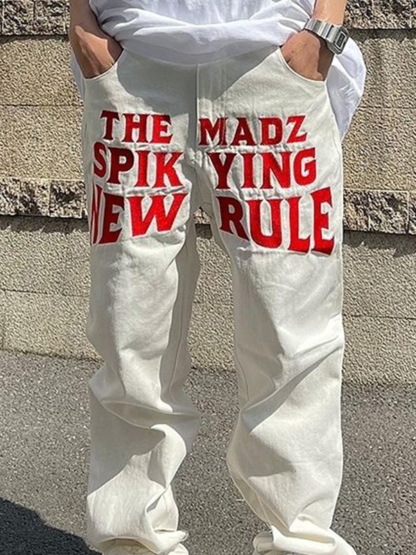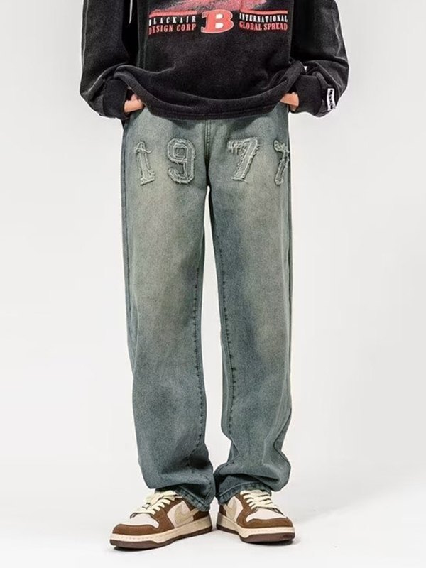 Vintage Gelb Schlamm Buchstaben Lose Gerade Jeans
