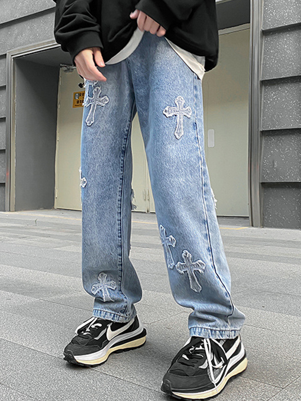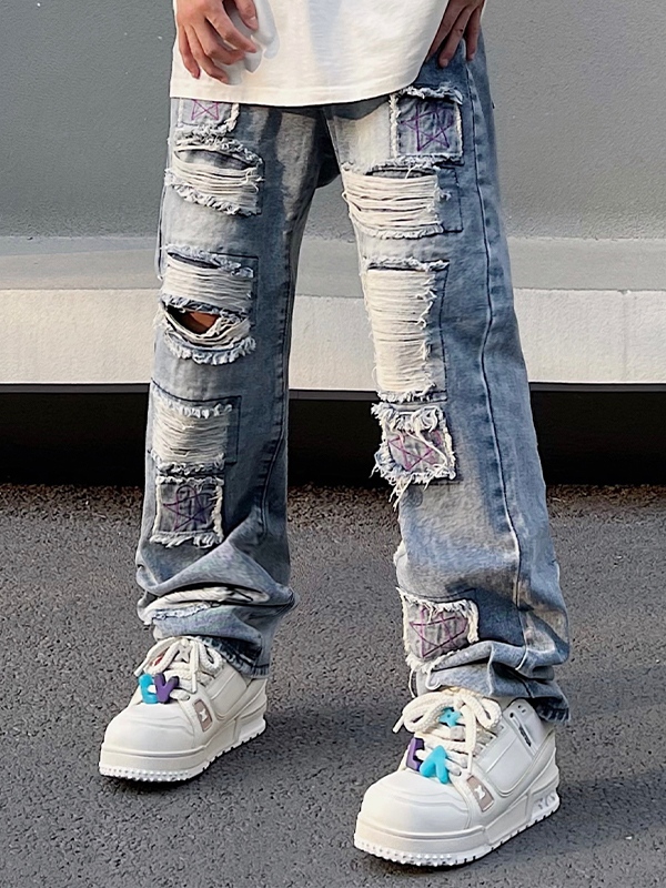 Verwaschene Herrenjeans mit Distressed-Applikation