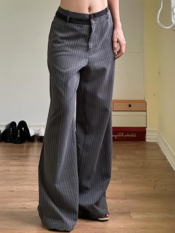 Gestreifte, kontrastfarbene, drapierte Anzughose mit stylischem Bund und lässiger langer Hose