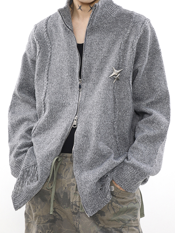 Herren-Cardigan-Pullover aus massivem, zerrissenem Metalldekor