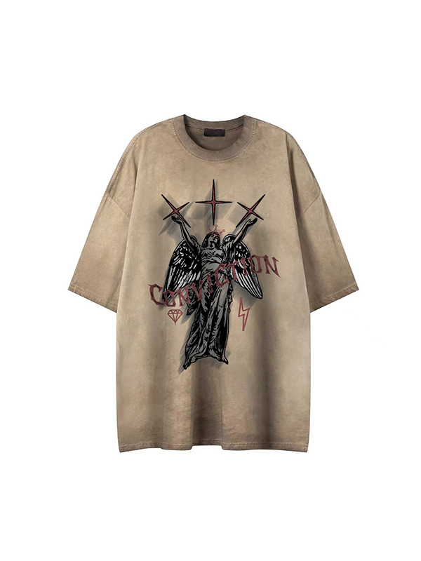 Übergroßes, kurzärmliges T-Shirt mit Flügel-Print für Herren