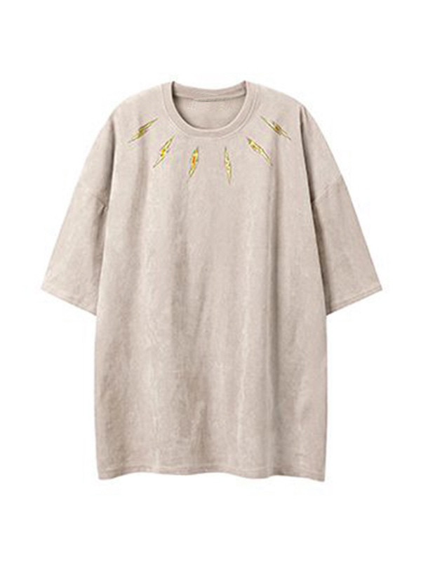 Herren-Kurzarm-T-Shirt mit Vintage-Wildleder-Blitz-Print