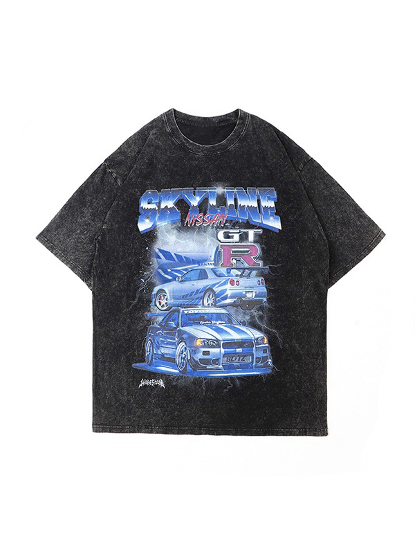 Gewaschenes Herren-T-Shirt mit Sportwagen-Print