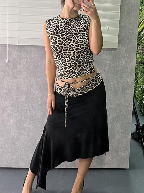 Einfarbiger Zweiteiler aus Leder mit Bandeau-Schlitz und kurvigem Saum